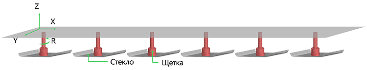 Высокая отказоустойчивость оборудования в агрессивной и влажной среде достигается благодаря использованию электродвигателей с защитой IP67 и низкоскоростного режима перемещения. Конструкция двигателя с новым ротором и интегрированной фронтальной частью снижает пульсации, повышает плавность движения и снижает тепловую нагрузку. Применение S-образных ускорений и замедлений дополнительно уменьшает вибрации и нагрузку на механику, что критично при обработке стекла. Кроме того, реализован мониторинг температуры внутри двигателя с передачей данных в вышестоящую систему — это обеспечивает своевременную реакцию на отклонения и стабильную работу оборудования даже в условиях водяной пыли.